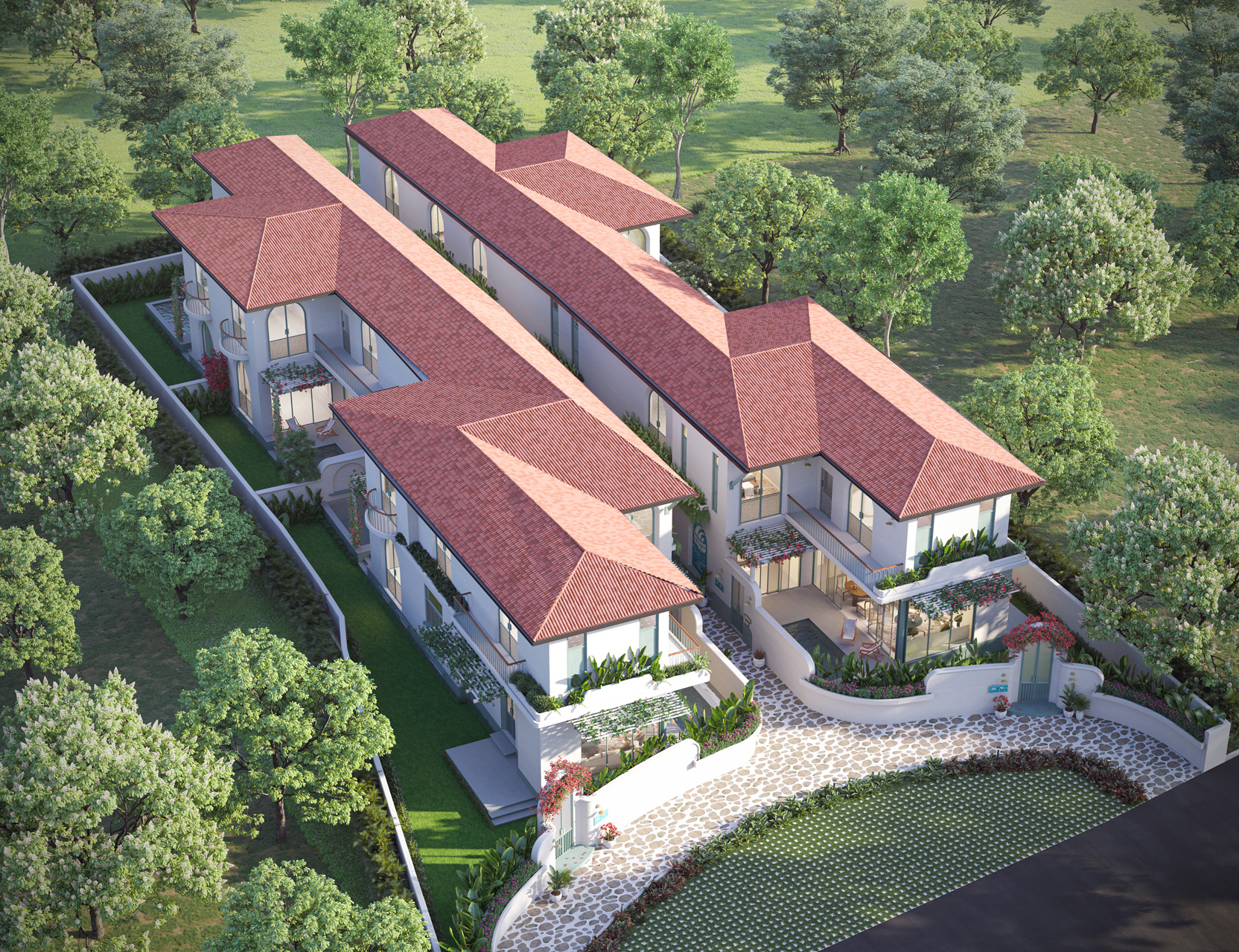 Located near Goa’s northern shoreline, Casa Belo Morjim reimagines the intimacy of Mediterranean coastal towns for a modern audience. The development consists of eight villas in a row-house format, unified by a pedestrian pathway that acts as a communal spine. This central walkway creates opportunities for chance encounters and shared life while giving each villa a private retreat.